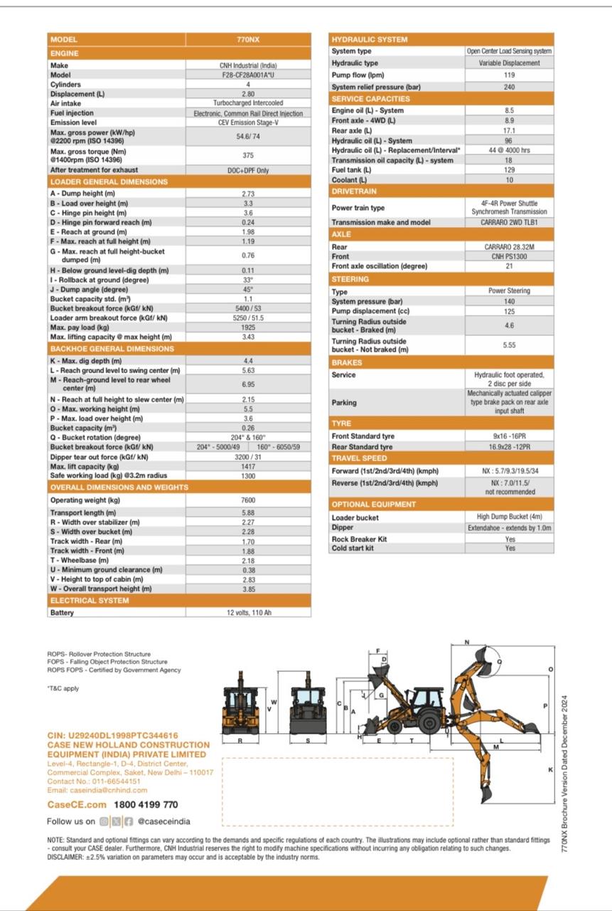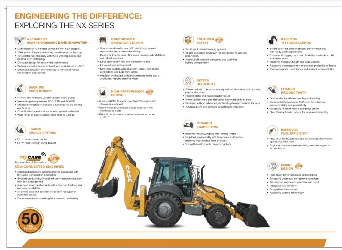 The CASE 770NX CEV5 Backhoe Loader is a highly advanced, efficient, and robust construction machine designed for tough applications with next-gen hydraulics, powerful F28 engine, operator-centric cabin, and versatile loader/backhoe performance.
