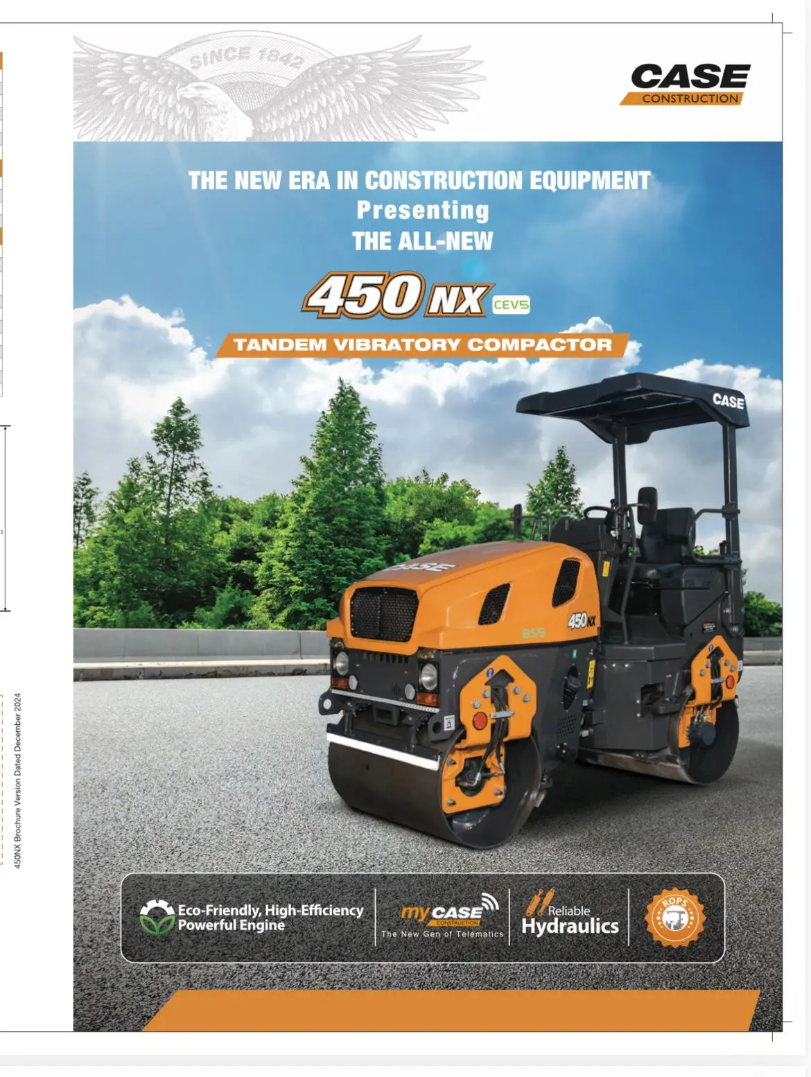 The CASE 450NX Tandem Vibratory Compactor marks a new era of high performance and reliability in road construction.