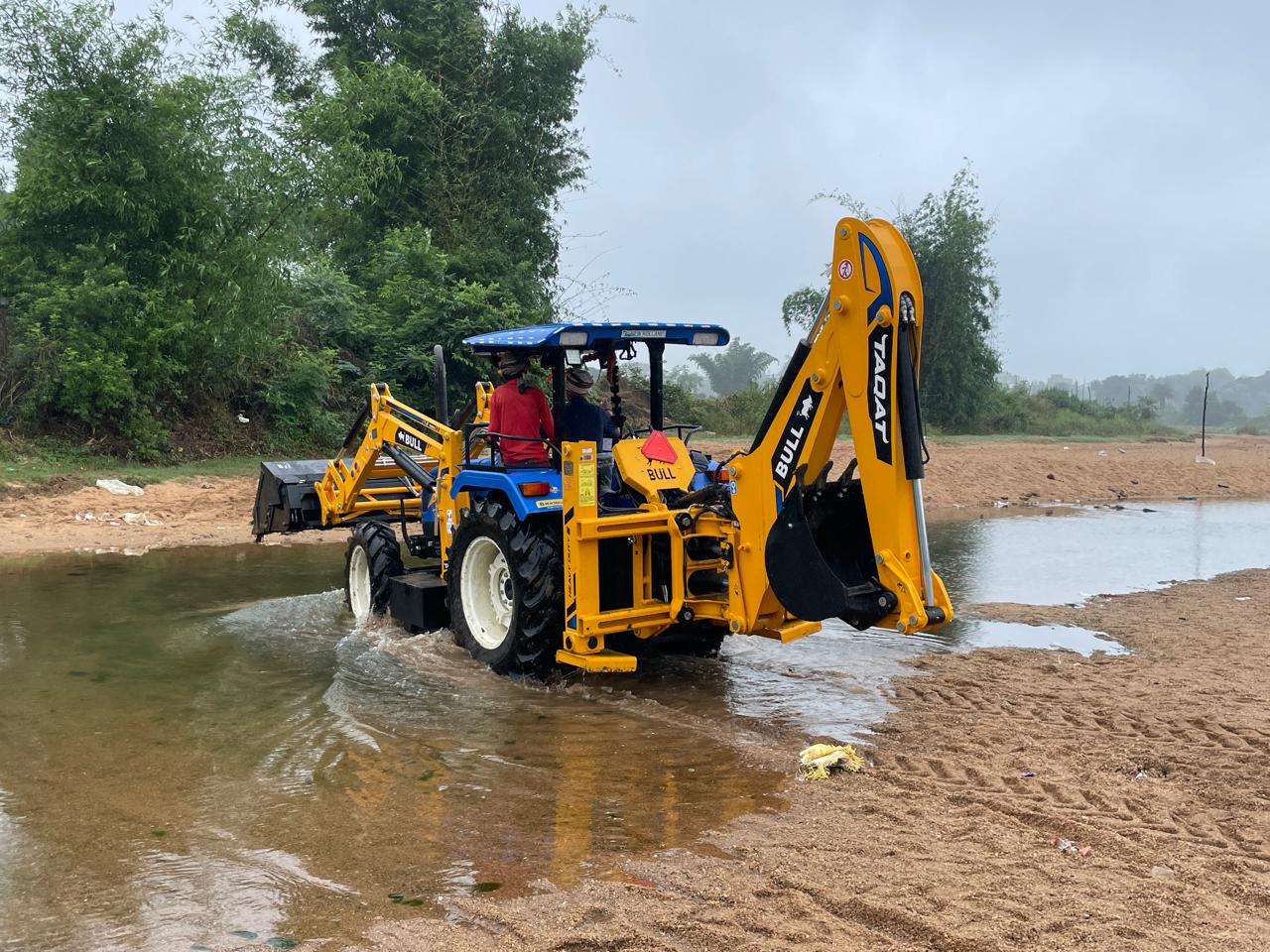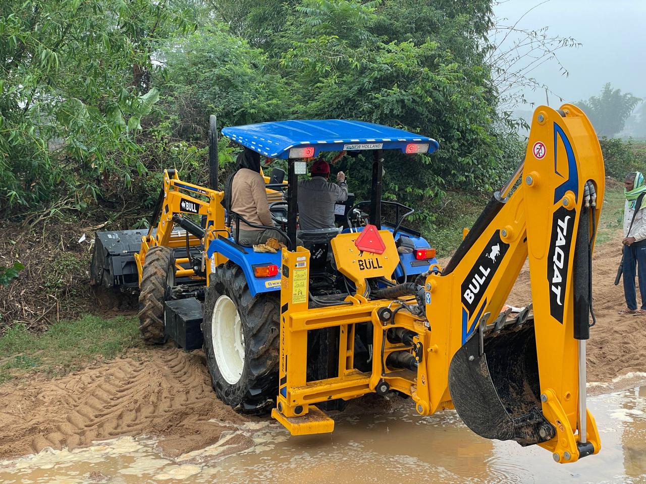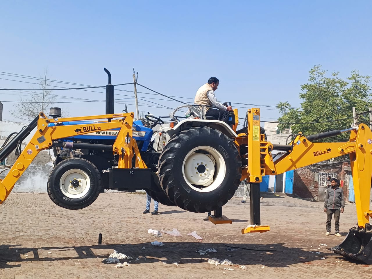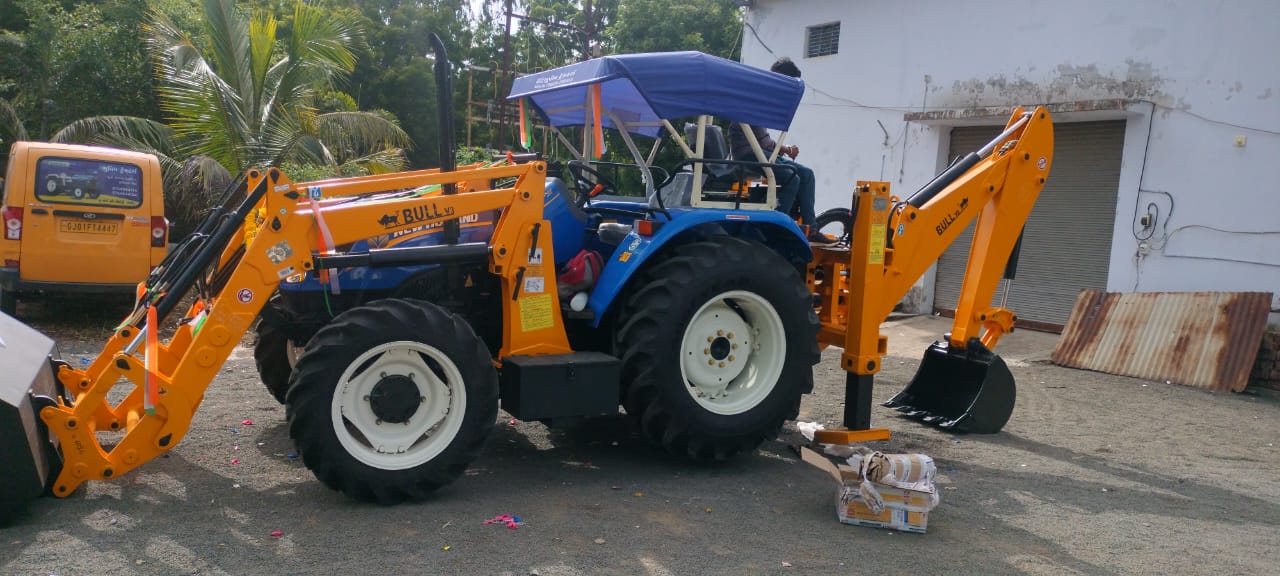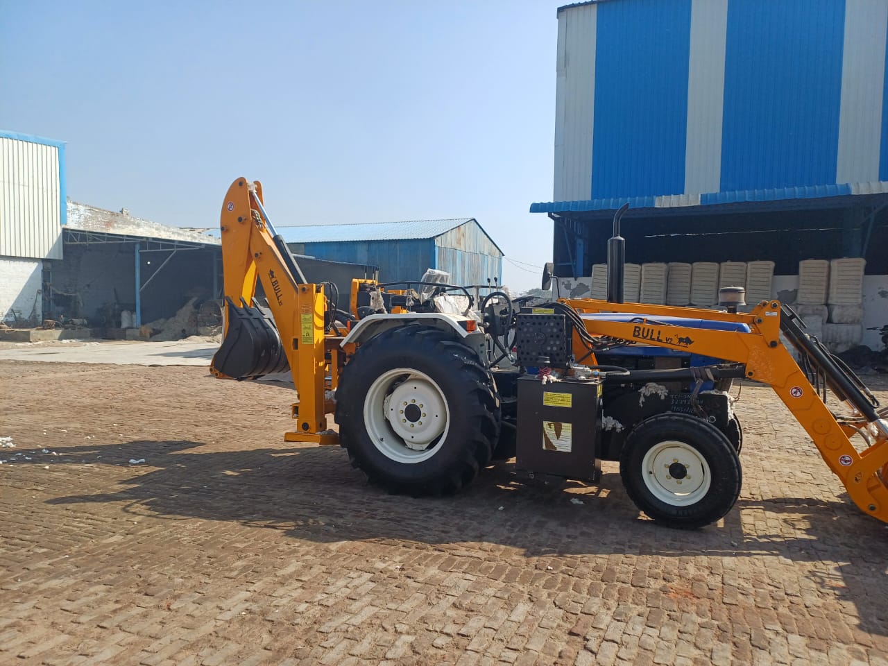 The backhoe, which attaches at the rear, transforms the tractor into a compact digger capable of deep trenching, pit digging, foundation work, and pipe placement. It can be quickly attached or removed, enabling the tractor to alternate between agricultural fieldwork and earth-moving operations efficiently. The New Holland tractor at the heart of the system typically features reliable 2WD/4WD, 3- or 4-cylinder engines ranging from 45 to 60+ HP (model-dependent), and a comfortable operator platform. Bull’s loader/backhoe units are noted for their large lifting capacities, reach, and rugged build. Operator controls are ergonomically placed for precise and safe operation. Together, this combination unlocks tremendous utility from a standard farm tractor, making it suitable for work on construction sites, farms, and infrastructure projects.